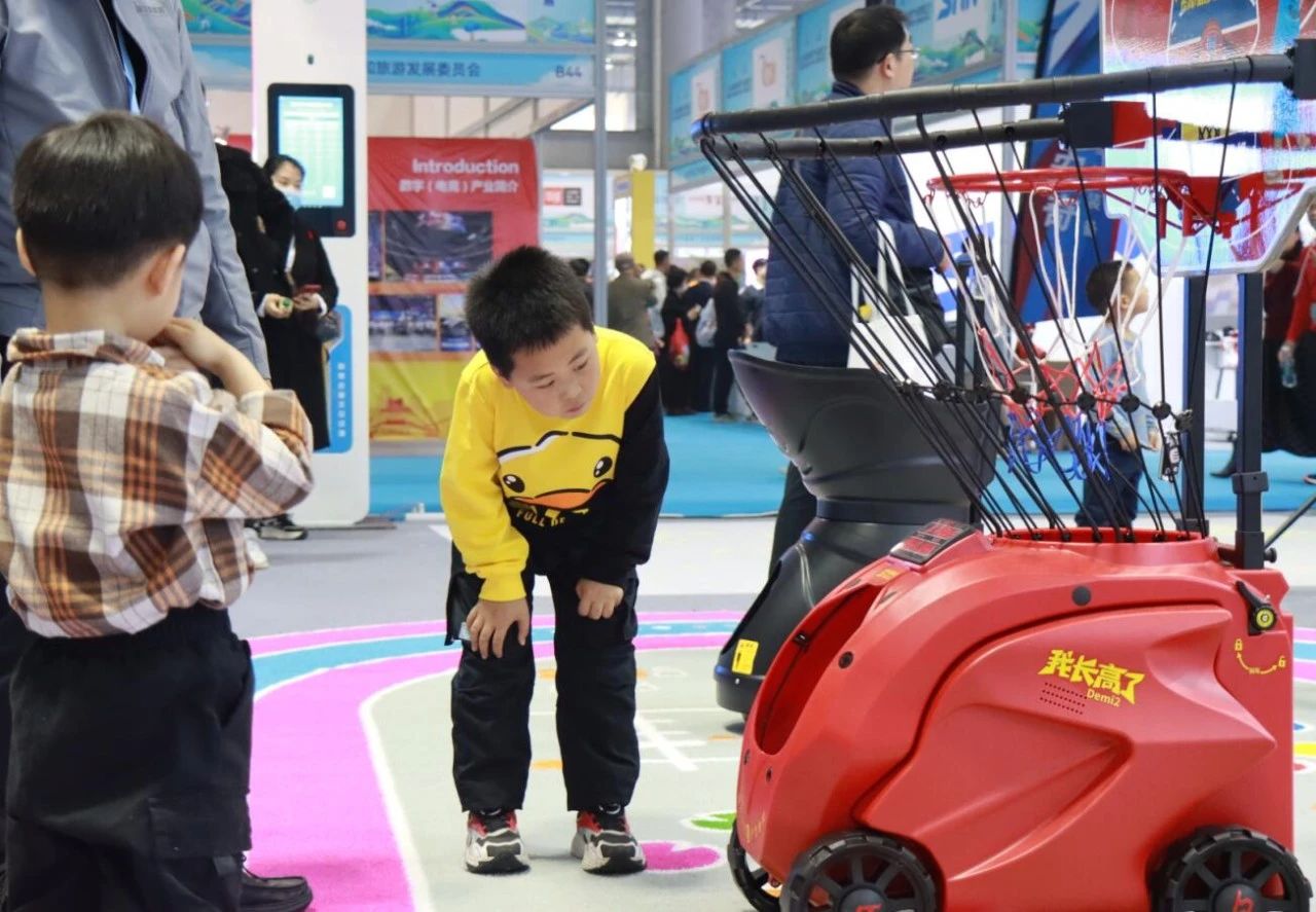 桃花视频APP污无限兒童籃球機前擠滿了參與體驗的觀眾,該兒童機桃花视频APP污无限遙控,自定義發球速度、頻率,可以培養孩子籃球興趣,激發潛能,成為孩子的籃球運動啟蒙教師,讓孩子輕鬆暢想運動。